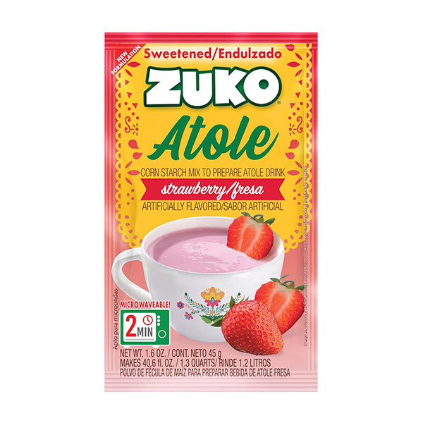 Atole con Sabor Fresa Mezcla Instantánea, Zuko (1.6 oz).